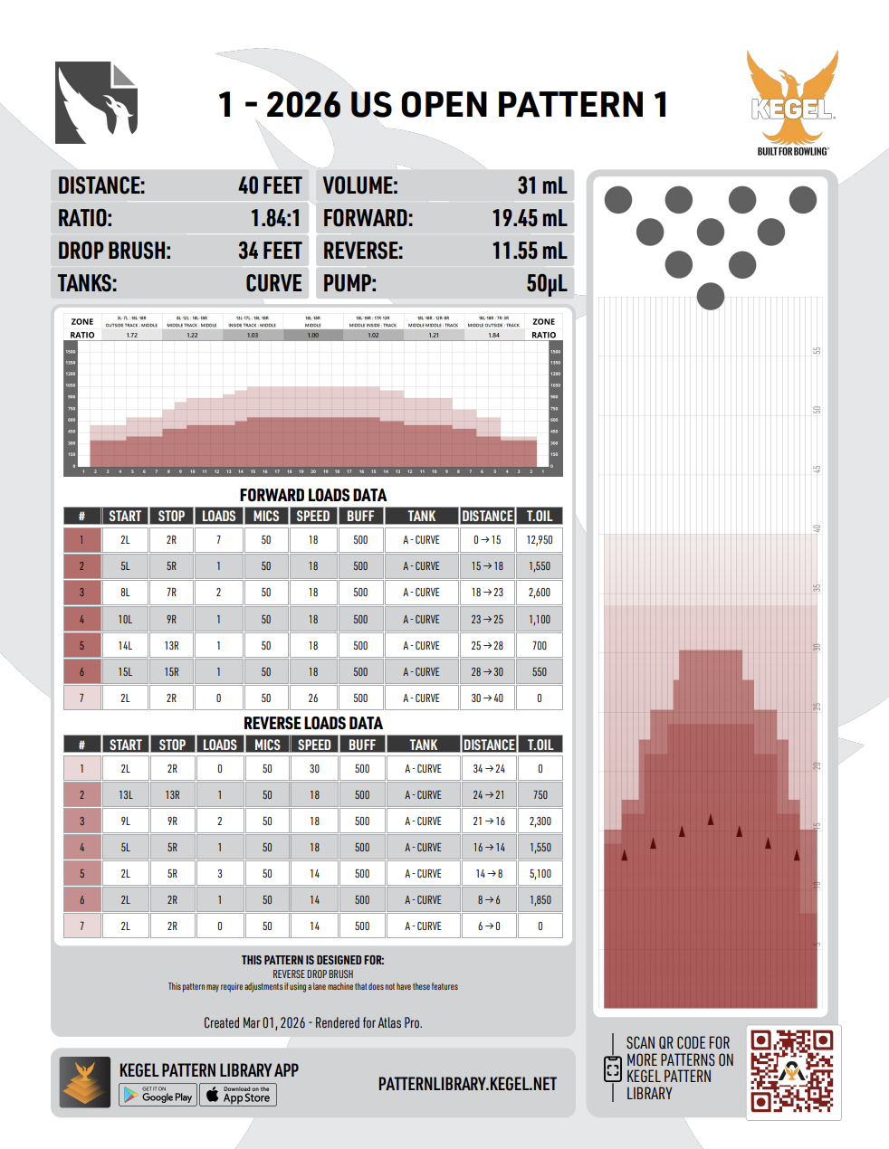 The United States Bowling Congress confirmed the Oil Pattern that will be used for the opening eight-game qualifying block on Tuesday. The pattern measures 40 feet in length with a 1.84 to 1 ratio and a total volume of 31 ml.